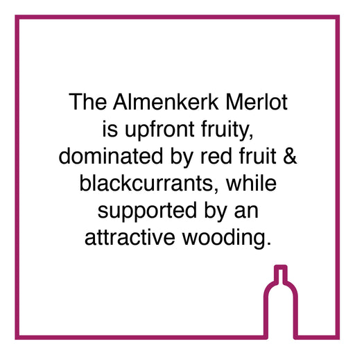 AlmenkerkOriginal price R 2,010.00 - Original price R 2,010.00Original priceR 2,010.00R 2,010.00 - R 2,010.00Current price R 2,010.00| /The Almenkerk Merlot is upfront fruity, dominated by red fruit & blackcurrants, while supported by an attractive wooding. It has an unmistakabl...