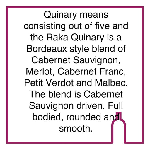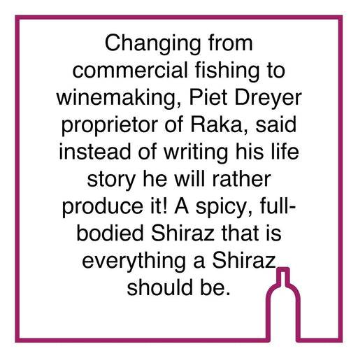 RakaOriginal price R 900.00 - Original price R 900.00Original priceR 900.00R 900.00 - R 900.00Current price R 900.00| /Tasting Notes Ruby red in colour and perfumed and aromatic nose with cherry and roasted tomato with hints of oregano, mulberries, and juicy plums....