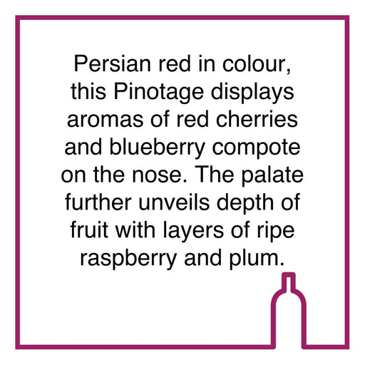HoopenburgOriginal price R 870.00 - Original price R 870.00Original priceR 870.00R 870.00 - R 870.00Current price R 870.00| /Out of stockThis vivid Pinotage with a bright Persian red colour displays aromas of red cherries and blueberry compote on the nose - an explosion of fruit and ...