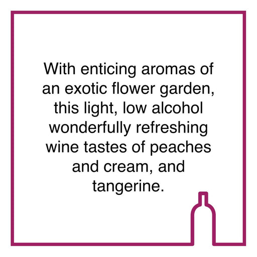 Bruce JackOriginal price R 570.00 - Original price R 570.00Original priceR 570.00R 570.00 - R 570.00Current price R 570.00| /Tasting NotesWith enticing aromas of an exotic flower garden, this light, low alcohol wonderfully refreshing wine tastes of peaches and cream, and ...