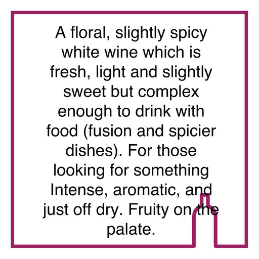 VillieraOriginal price R 570.00 - Original price R 570.00Original priceR 570.00R 570.00 - R 570.00Current price R 570.00| /Tasting NotesA floral, slightly spicy white wine which is fresh, light and slightly sweet but complex enough to drink with food (fusion and spicier...