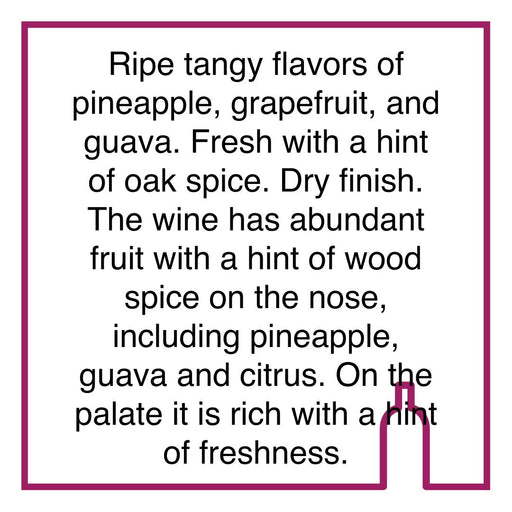 VillieraOriginal price R 564.00 - Original price R 564.00Original priceR 564.00R 564.00 - R 564.00Current price R 564.00| /Tasting NotesRipe tangy flavors of pineapple, grapefruit, and guava. Fresh with a hint of oak spice. Dry finish. The wine has abundant fruit with a...