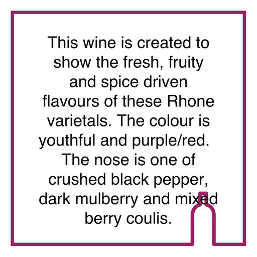 David FinlaysonOriginal price R 714.00 - Original price R 714.00Original priceR 714.00R 714.00 - R 714.00Current price R 714.00| /Tasting NotesThis wine is created to show the fresh, fruity and spice driven flavours of these Rhone varietals. The colour is youthful and purple/r...