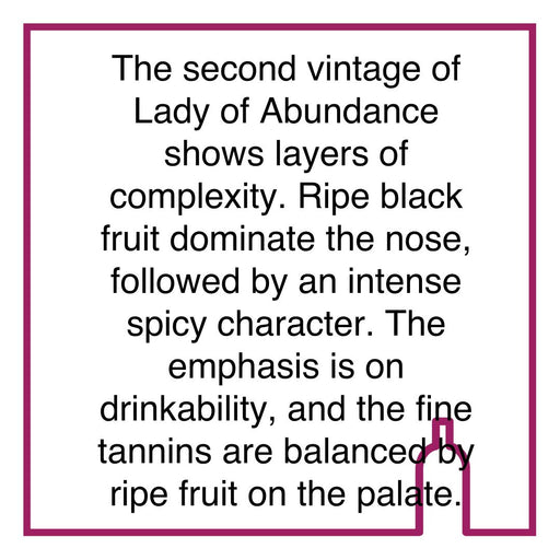 Groot ConstantiaOriginal price R 1,134.00 - Original price R 1,134.00Original priceR 1,134.00R 1,134.00 - R 1,134.00Current price R 1,134.00| /Tasting NotesThe second vintage of Lady of Abundance shows layers of complexity. Ripe black fruit dominate the nose, followed by an intense spicy c...